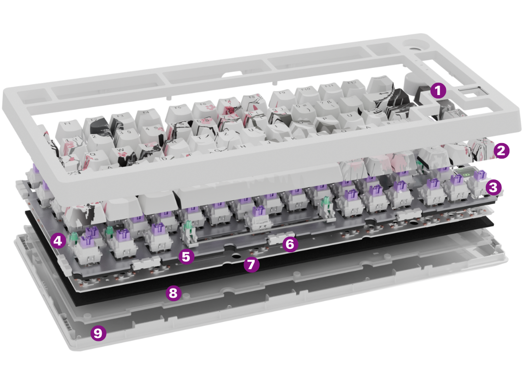 - Unvergleichliches Sound- und Tippgefühl durch komplexen, dämpfenden Aufbau des Gasket-Mount Keyboards.